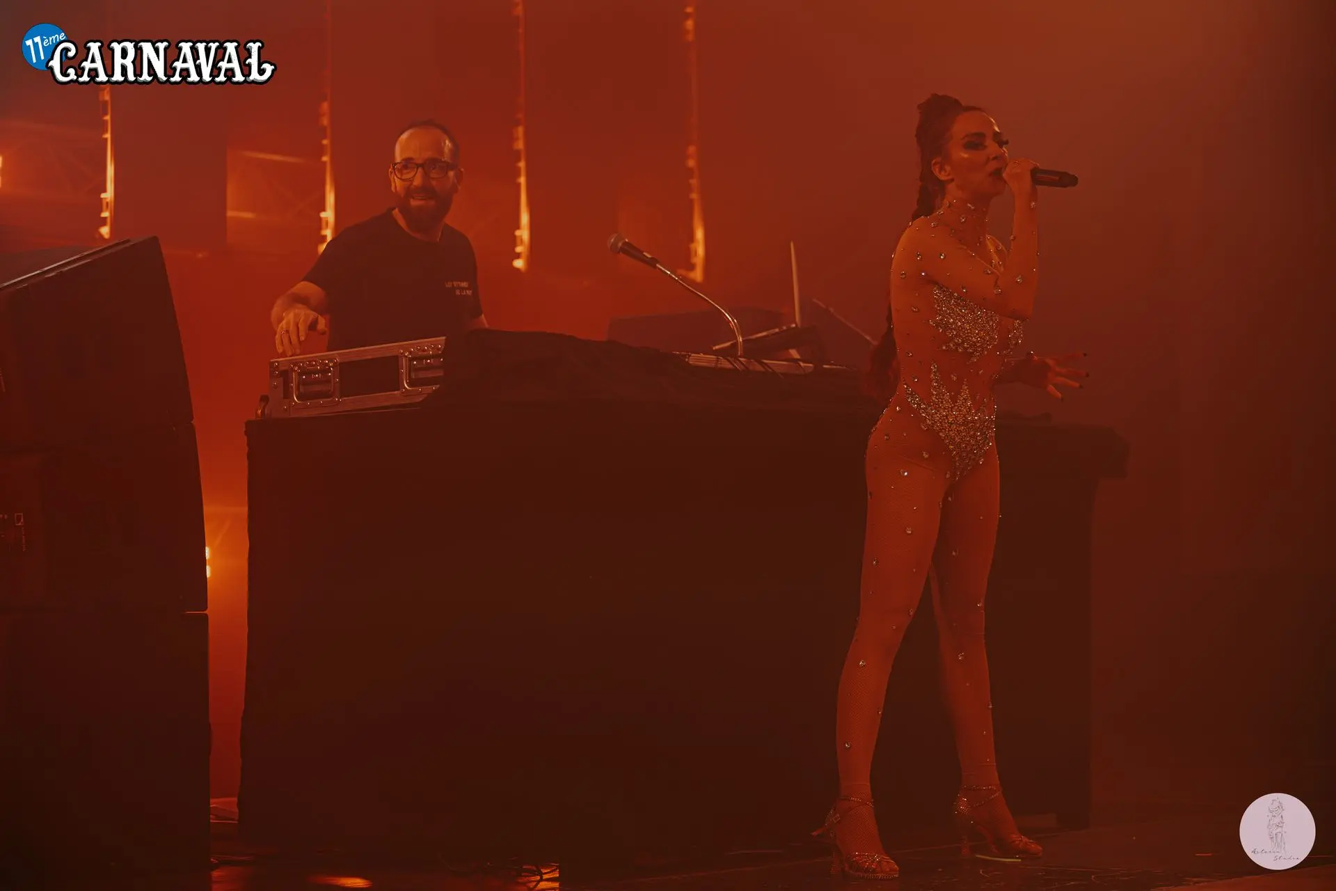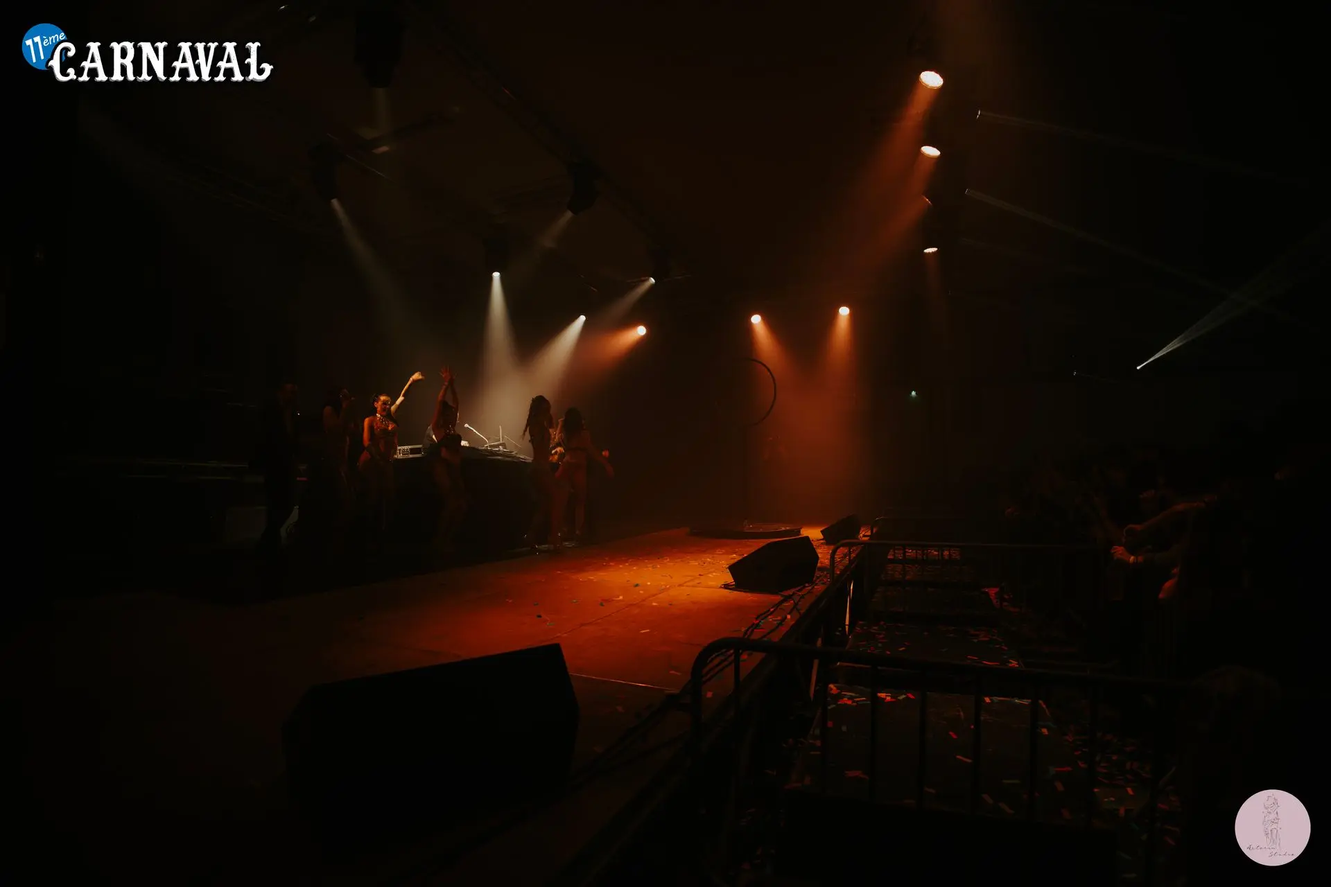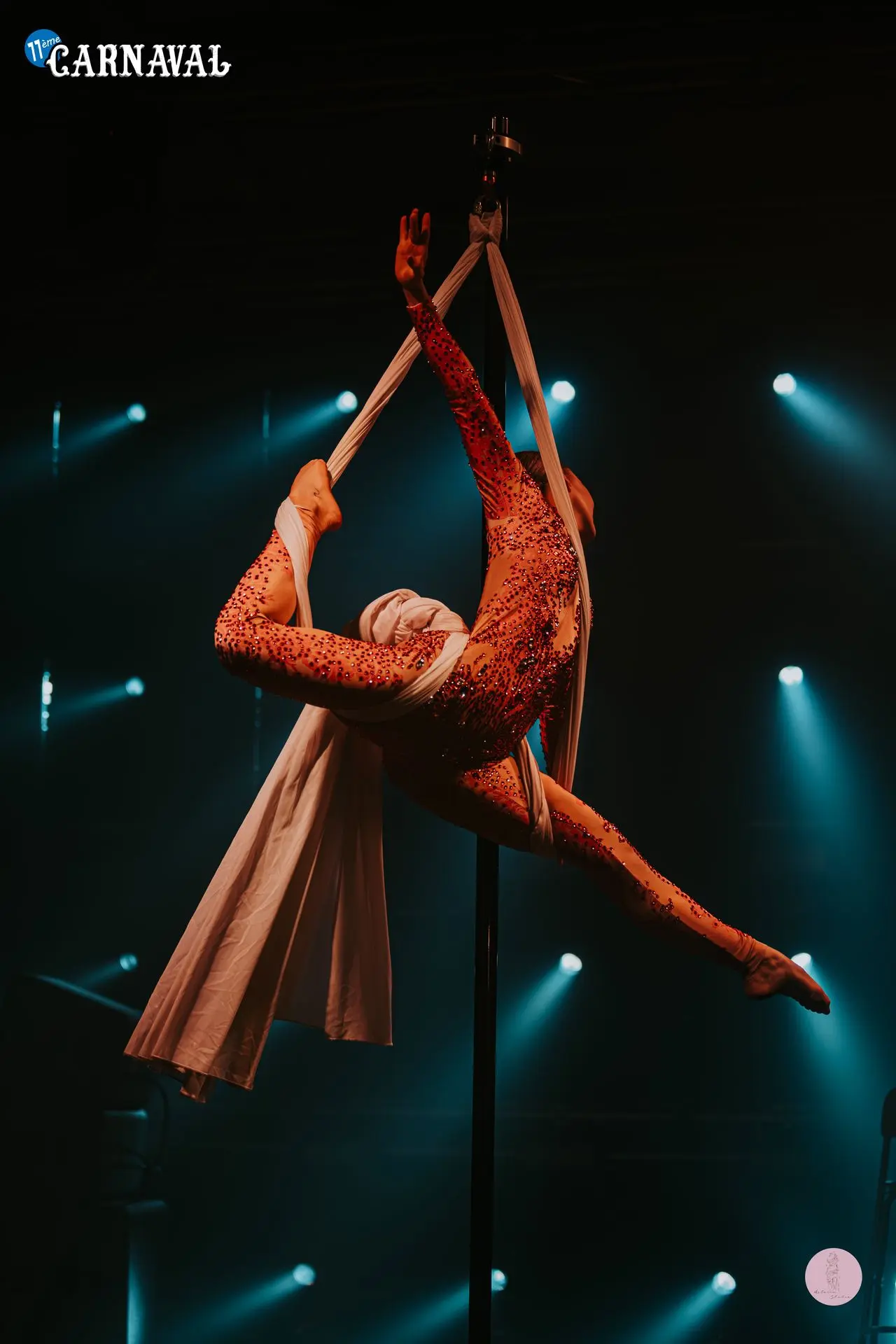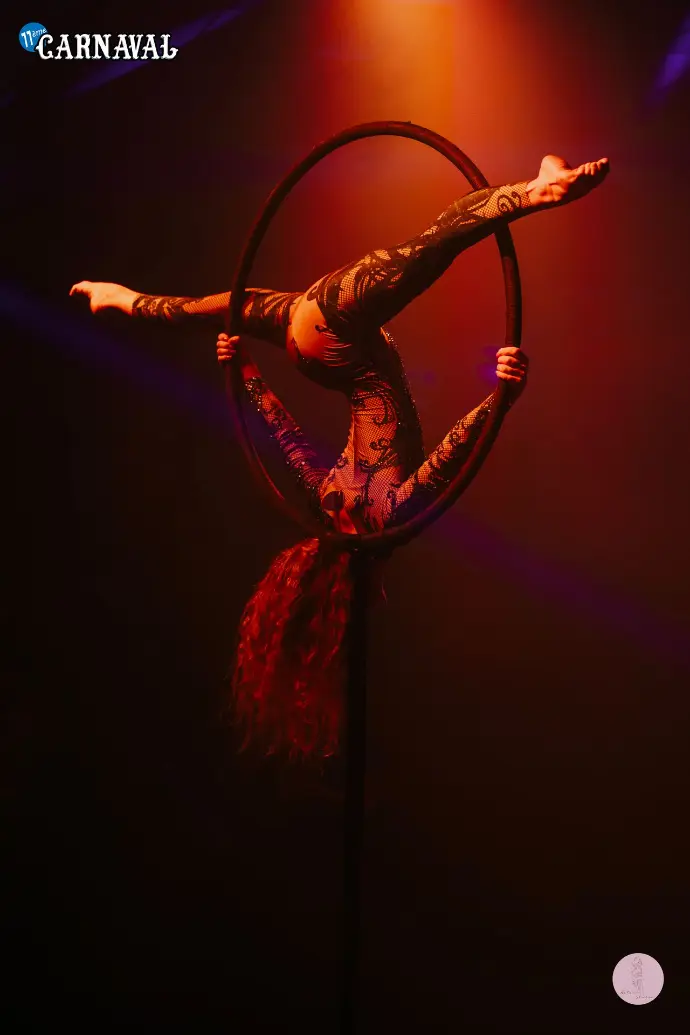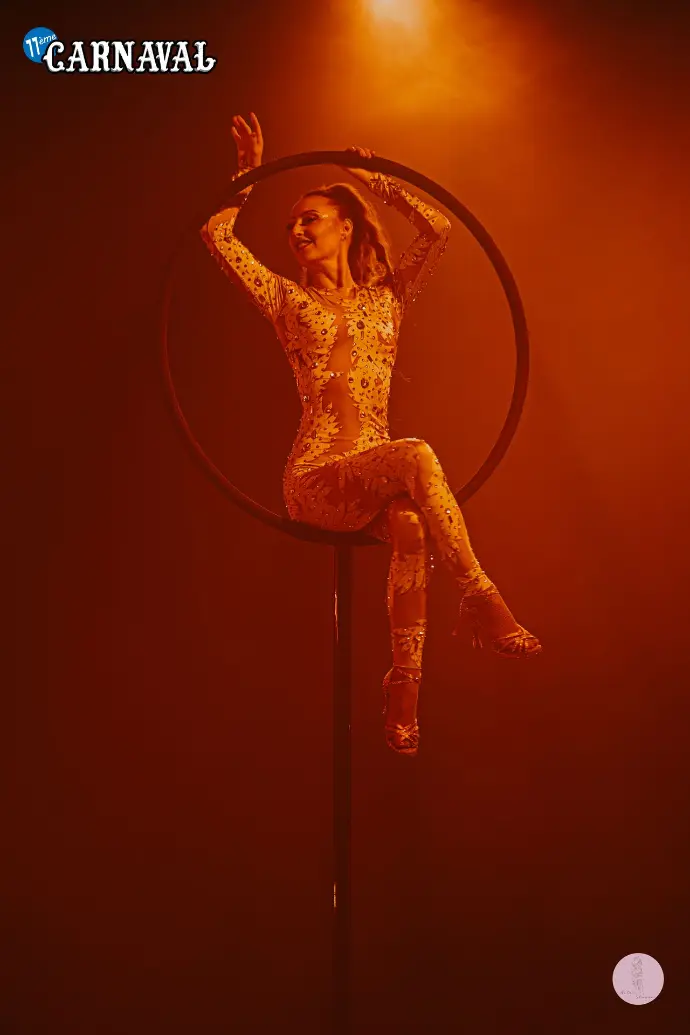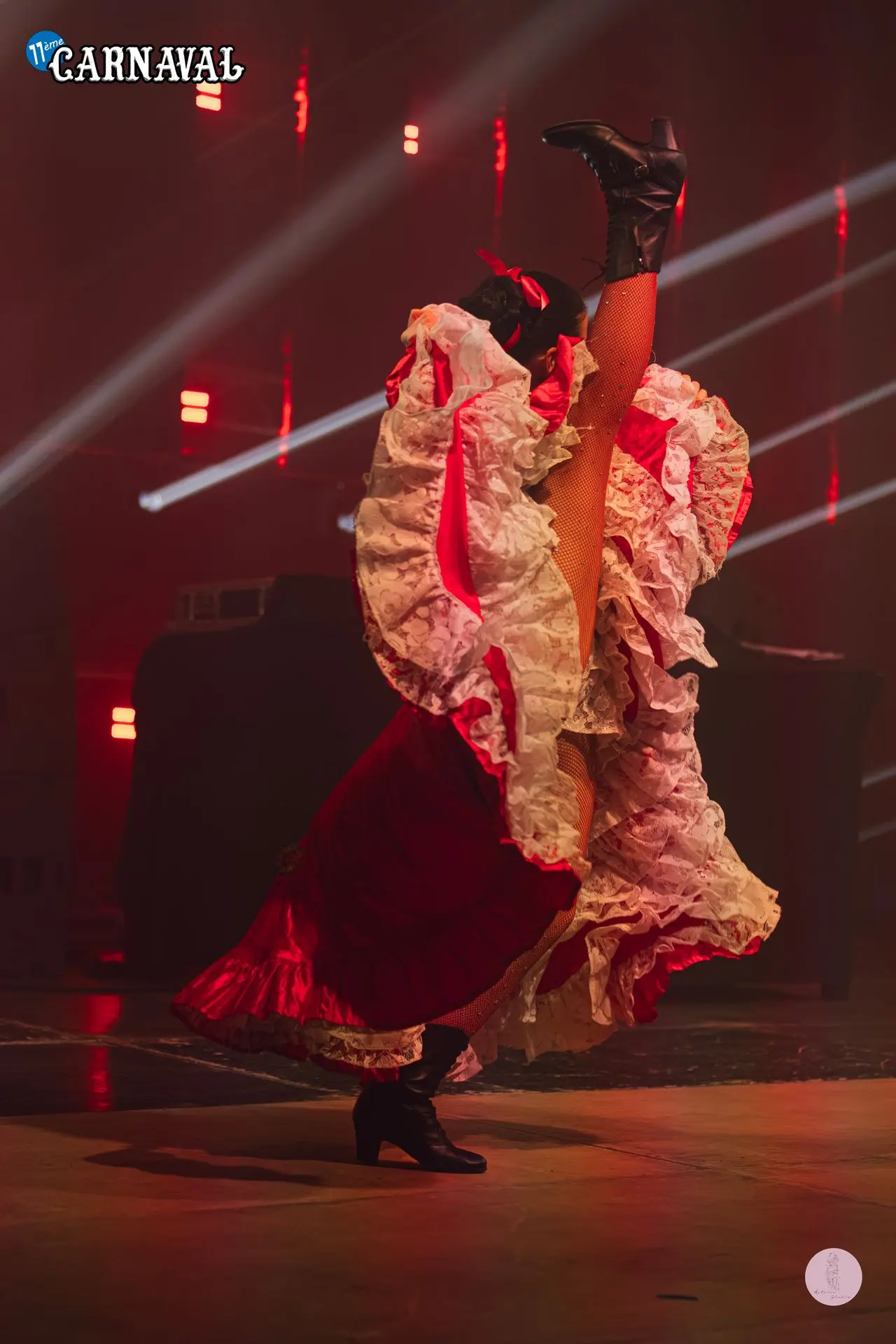 19h, vendredi. Showtime. Cancan, danses de cabaret, chant, pyrotechnie, jongle, acrobatie dans les airs... l'Atelier du spectacle, en coordination avec le staff des Rythmes de la Nuis, font vibrer la scène dans un show de lumières et de paillettes.