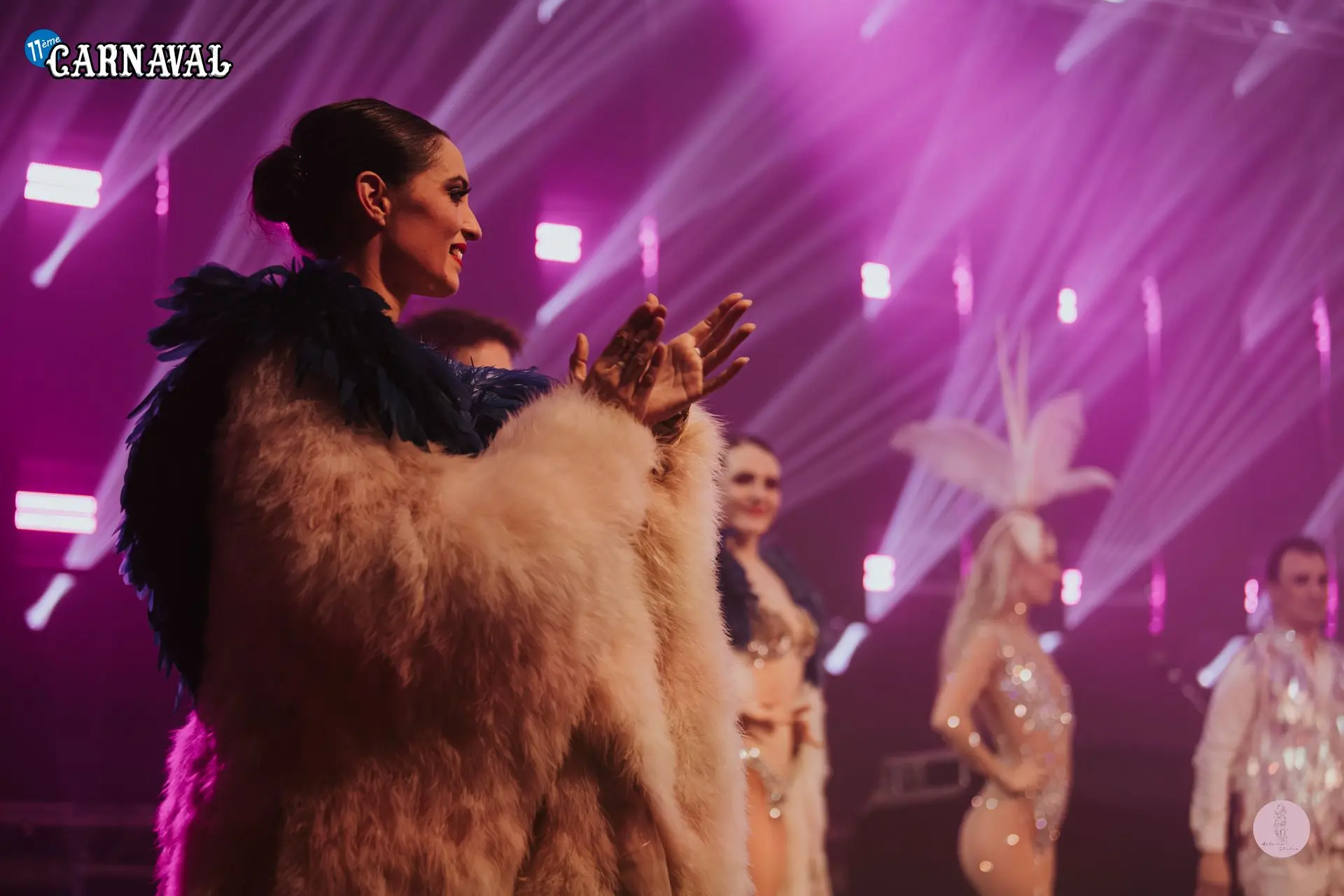 18h, vendredi. La pression monte, mais la bonne humeur ne s'éteint pas. On ajuste les dernières coiffures, on peaufine le maquillage et on enfile les plumes pour accueillir les invités à l'entrée de la salle. Une façon pour le public de faire quelques photos avec les danseuses et danseurs avant leurs passages sur scène.
